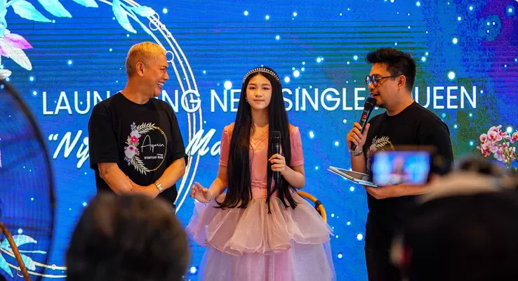 Penyanyi Belia Aqueen Azzahra bersama executive producer Benny Simanjuntak (kanan) saat Konferensi pers dan launching single “Nyanyian Malam” di Jakarta. Lagu ini menghadirkan sentuhan magis yang menggambarkan ketenangan dan misteri malam, dikemas dalam aransemen yang indah serta vokal yang penuh perasaan. Single ini menghadirkan nuansa yang simple dan easy listening, menggambarkan kisah yang beresonansi dengan banyak pendengar. Dukungan harmoni dari Rudolf De Queljoe dan Bertha McCarthy sebagai backing vocal semakin memperkaya warna musikal dalam lagu ini.